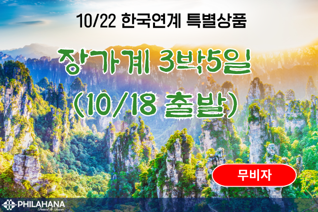 [연계 특별상품] 장가계 3박5일 프리투어 10/18 출발