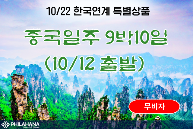 [연계 특별상품] 장가계 9박10일 프리투어 10/12 출발